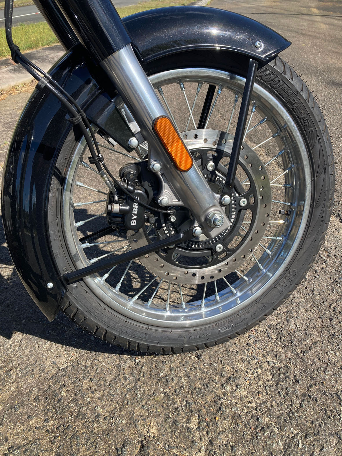 The hardware surrounding that engine is also common. Suspension duties are handled by non-adjustable 41mm telescopic forks with 130mm of travel, matched to twin rear shocks with six-step preload adjustment. Braking is ByBre at both ends, with a 300mm front disc and twin-piston caliper, a 270mm rear disc and single-piston caliper and standard two-channel ABS.